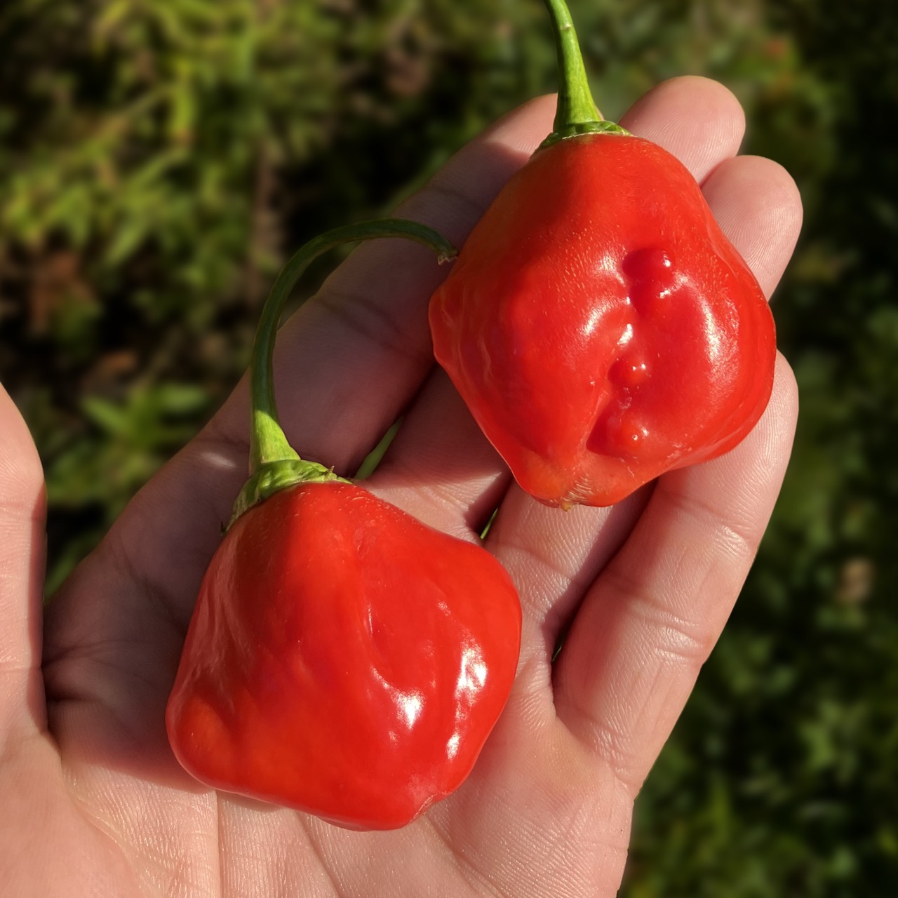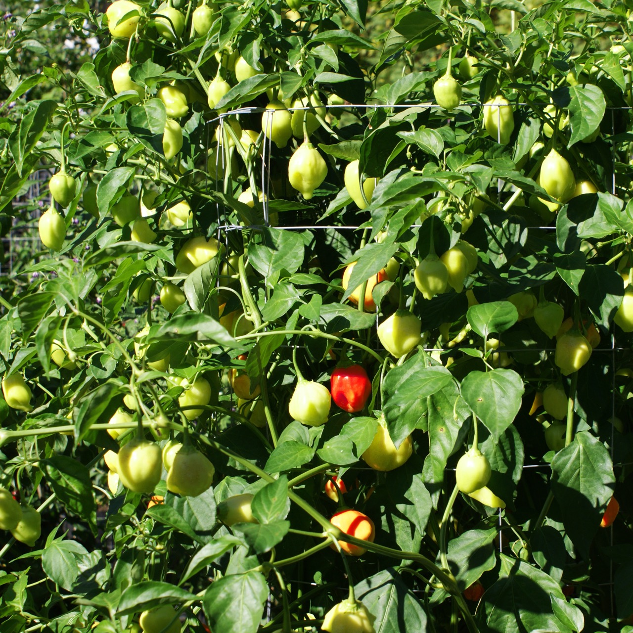 The Southern Apple Crisp is a superb Capsicum baccatum variety, renowned for its fruity flavor, subtly reminiscent of green apple and tropical fruits. Crisp and aromatic, it offers a moderate and balanced heat. This variety stands out for its rapid maturation and abundant production. The fruits transition from light green to a vibrant red when ripe. Their thick, crisp flesh reveals a fresh, slightly sweet aroma, with a tart note that evokes apple.