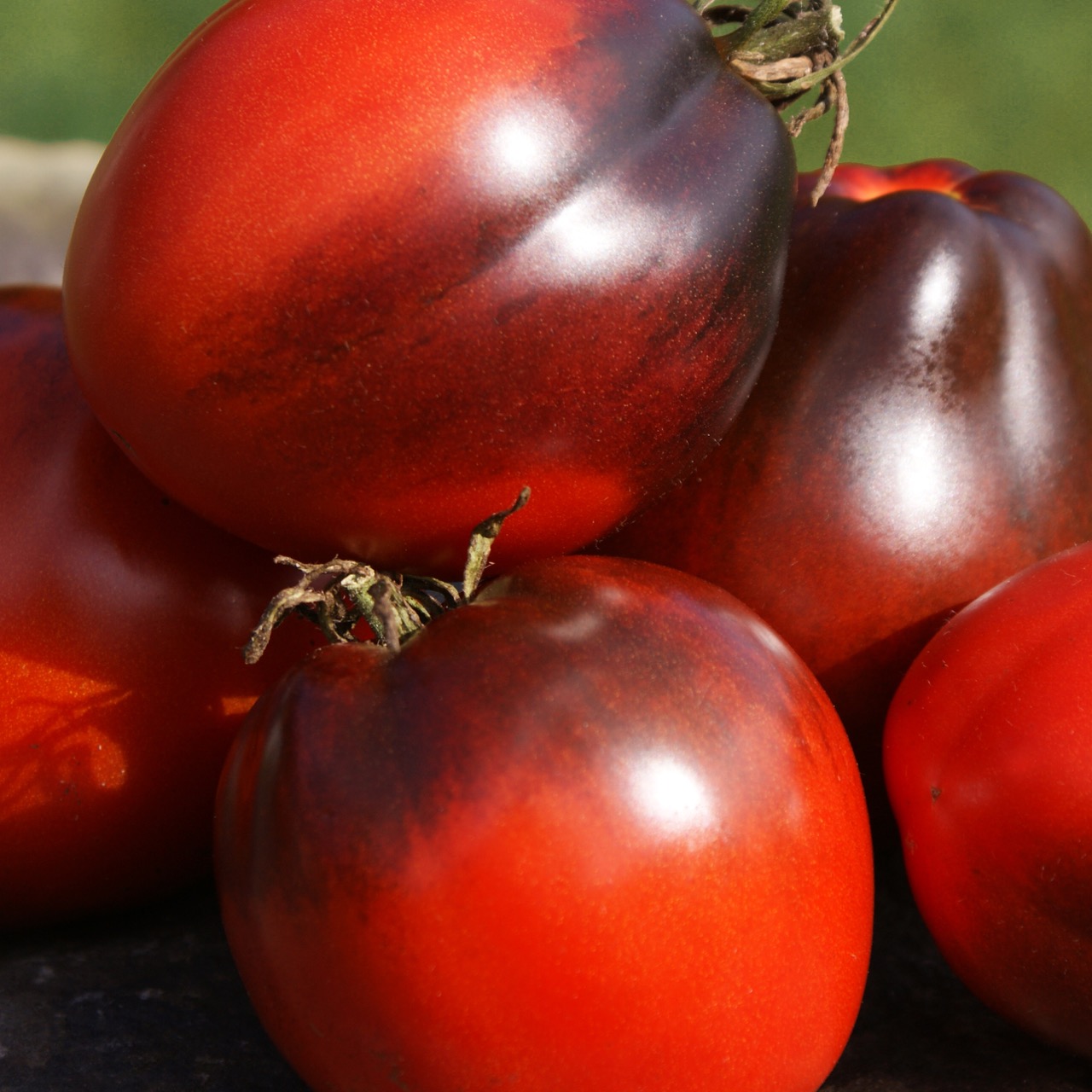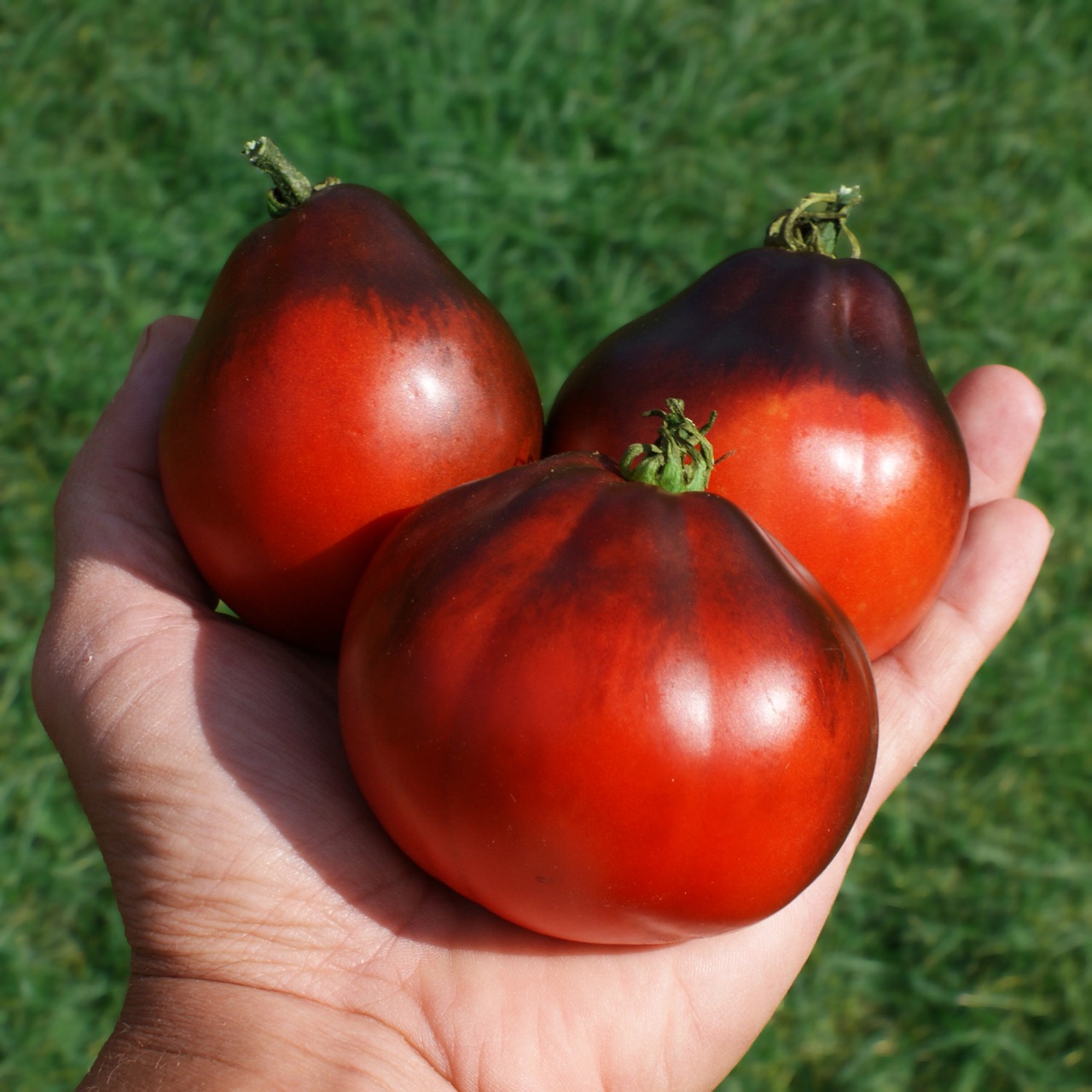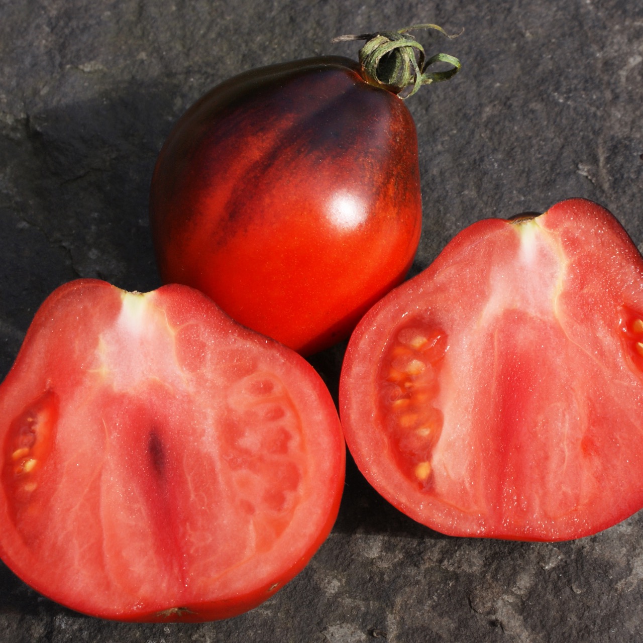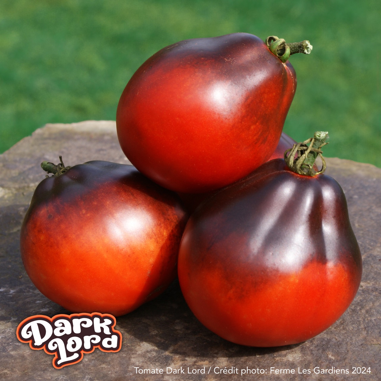 Dark Lord is a modern American variety renowned for its dark and mysterious appearance, typical of black tomato lines. It produces medium-sized fruits, mostly pear-shaped, but can also yield rounder fruits, which adds to the variety’s visual diversity. The hues range from deep brownish-red to very dark mahogany, sometimes almost black depending on sun exposure and soil richness. The flesh is dense, sweet, and aromatic, with the characteristic complexity of dark tomatoes: sweet notes, rich depth, and a slightly smoky hint. Vigorous and highly productive, Dark Lord is a fascinating variety for both its taste and its unique aesthetics.