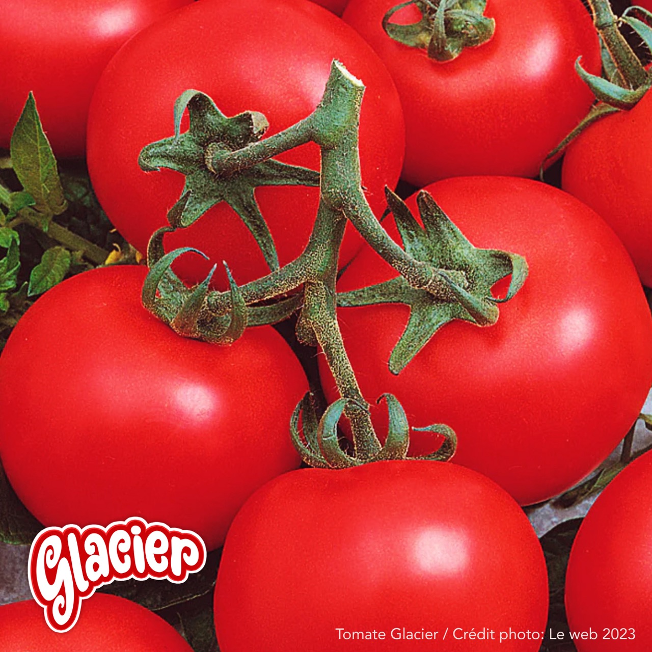Glacier is a Swedish variety, specially selected for its cold resistance, vigor, and ability to produce in conditions where many other tomatoes fail. It yields small to medium globe-shaped fruits, round, smooth, and a vibrant red. Its flesh is juicy, sweet, and pleasantly balanced, with a surprisingly rich flavor for a short-season tomato. Its main asset remains its exceptional earliness, as Glacier produces in just 55 to 65 days, well before most varieties. The plant is semi-determinate and compact, very productive, and continues to fruit even in cool weather, making it an ideal variety for northern regions, unstable seasons, or gardeners seeking quick production.