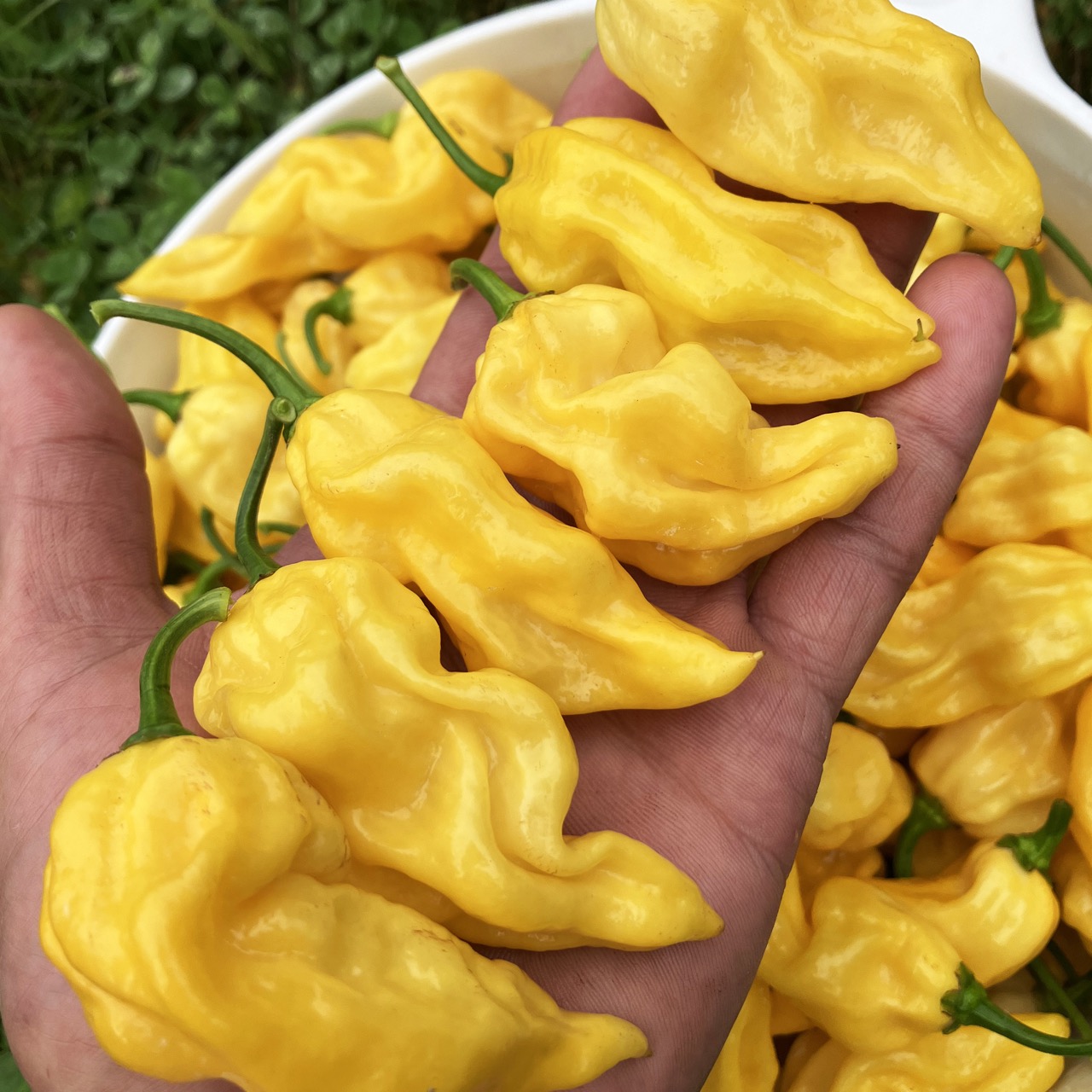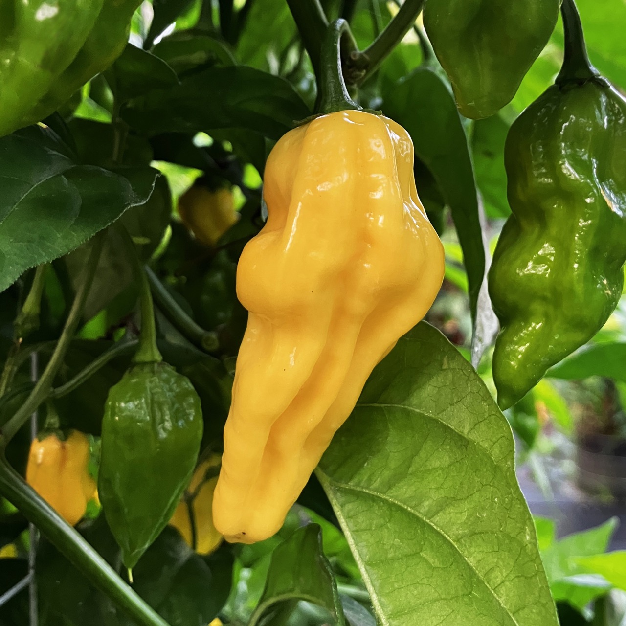 The Lemon Reaper is an original cross between an Aji Lemon (baccatum) and a Carolina Reaper (chinense), created by Carlo Martini (Semi Strani). It was developed to add more heat and character to the aromatic Aji Lemon, while preserving its citrusy freshness. The fruits, smooth and elongated, display a beautiful golden yellow color at maturity, with a pointed and irregular shape. The Lemon Reaper offers an abundant yield of fruits with a lively and tangy flavor, revealing a fruity and citrusy profile, supported by a distinct heat, estimated between 500,000 and 1,000,000 SHU depending on cultivation conditions.