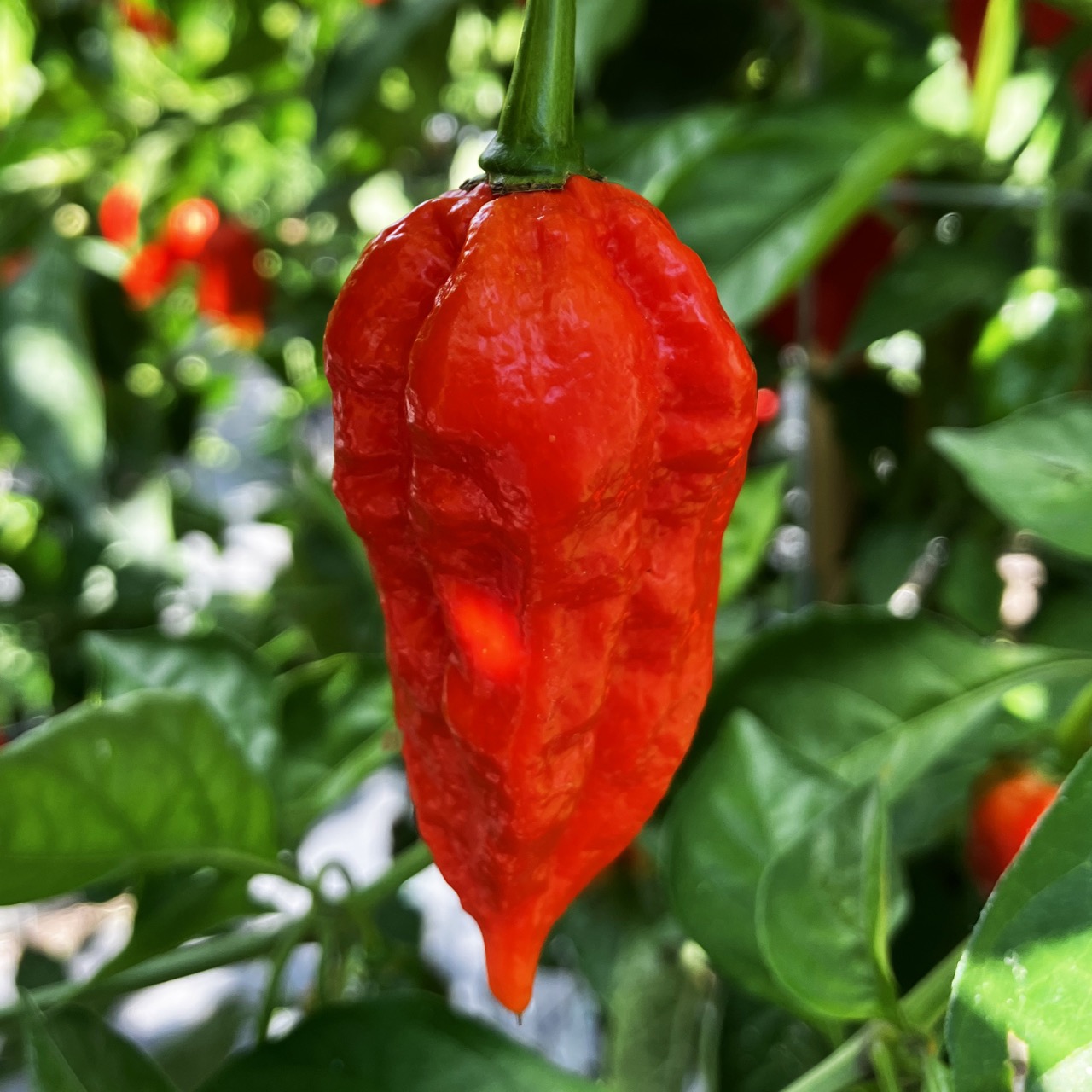 The Naga Dorset was developed from the Naga Morich in the mid-2000s by Joy and Michael Michaud in Dorset County (England). It was long considered one of the most potent chili peppers in the world. The fruits ripen from green to deep red when mature. Their thick flesh releases a fruity and slightly floral flavor before unleashing a scorching and persistent heat. The variety is known for its stability, high productivity, and exceptional aromatic quality.