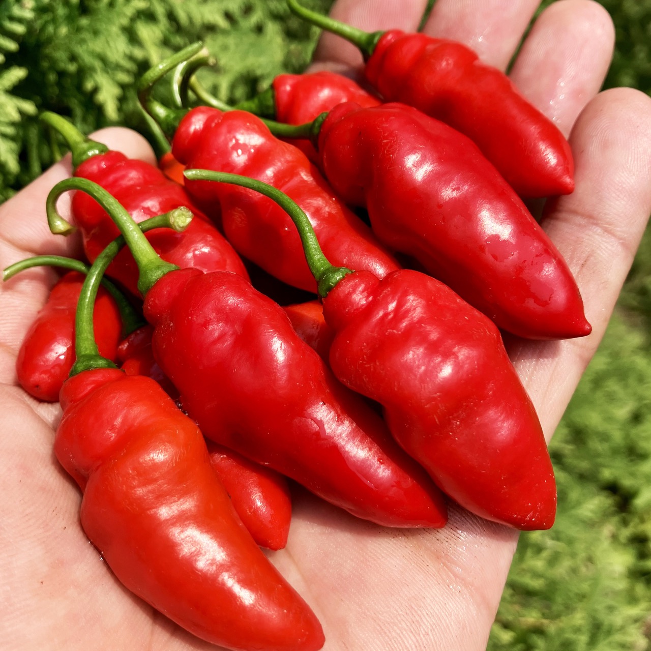 The Rocoto Aji Largo is an ancient Andean variety recognizable by its fuzzy leaves and black seeds. It is one of the smallest varieties in the rocoto family. This variety produces thick, fleshy fruits that ripen from dark green to bright red when fully mature. Their juicy and crisp flesh offers a fruity and slightly herbaceous flavor, accompanied by a sustained but pleasant heat. The Rocoto Aji Largo stands out for its relative cold resistance compared to other chili species, thriving particularly well in temperate climates or when grown in pots in colder regions. According to many, rocotos are among the most flavorful peppers in the world! They possess exceptional culinary potential thanks to their thick, juicy, and fragrant flesh, which holds up perfectly to cooking. Their moderate and fruity heat pairs wonderfully with almost all types of dishes.