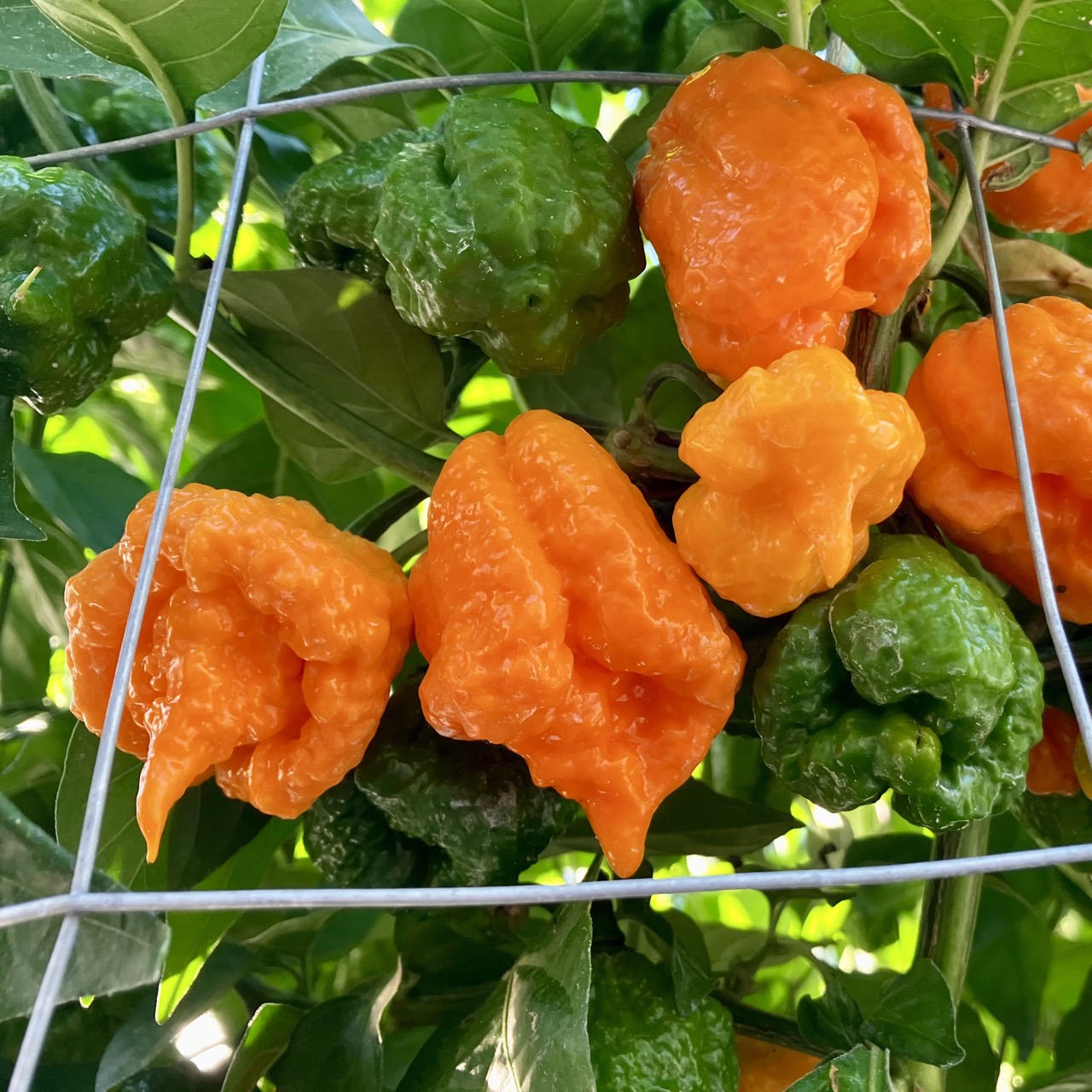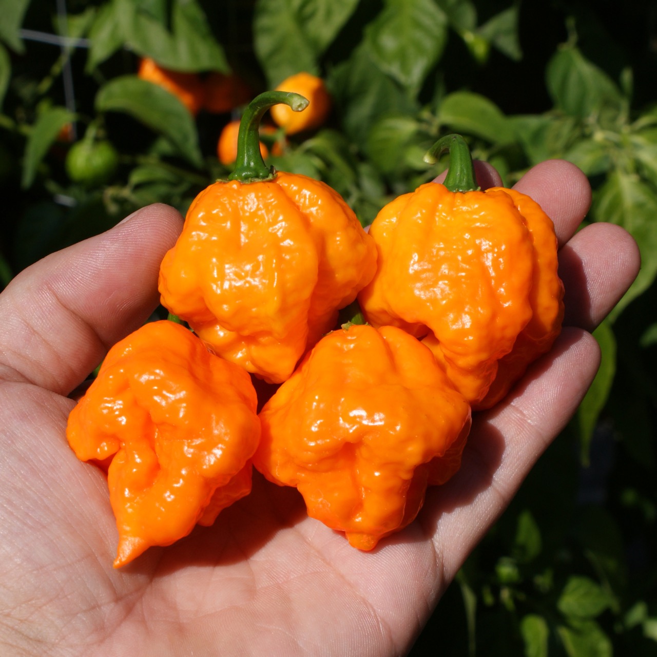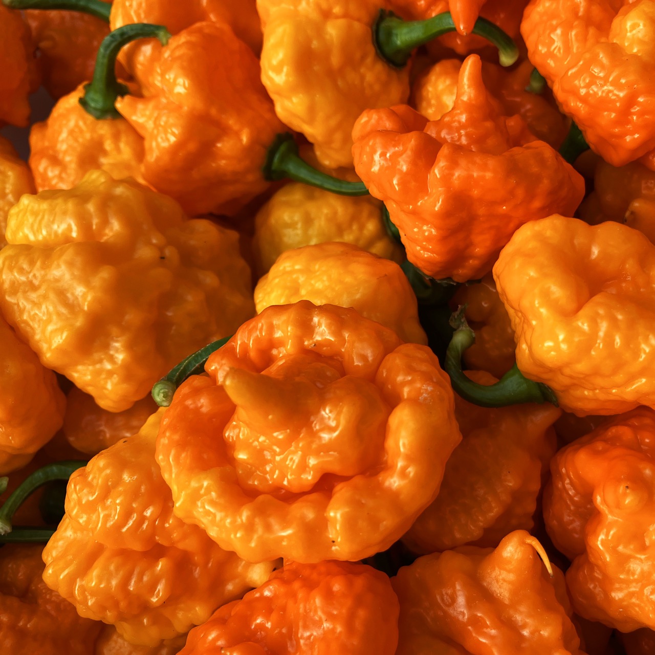 The Scotch Brain is an exceptional variety born in 2012 from a cross between a Scotch Bonnet and a 7 Pot Yellow Brainstrain. This pepper combines the characteristic shape of the Scotch Bonnet with the bumpy texture of the Brainstrain, yielding spectacular fruits that ripen from green to yellow, then to a golden orange-yellow when fully mature. The plants are vigorous and very productive, offering an abundance of peppers with a fruity and citrusy, particularly aromatic flavor. Their heat is intense but progressive, stronger than a classic Scotch Bonnet, yet not aggressive.