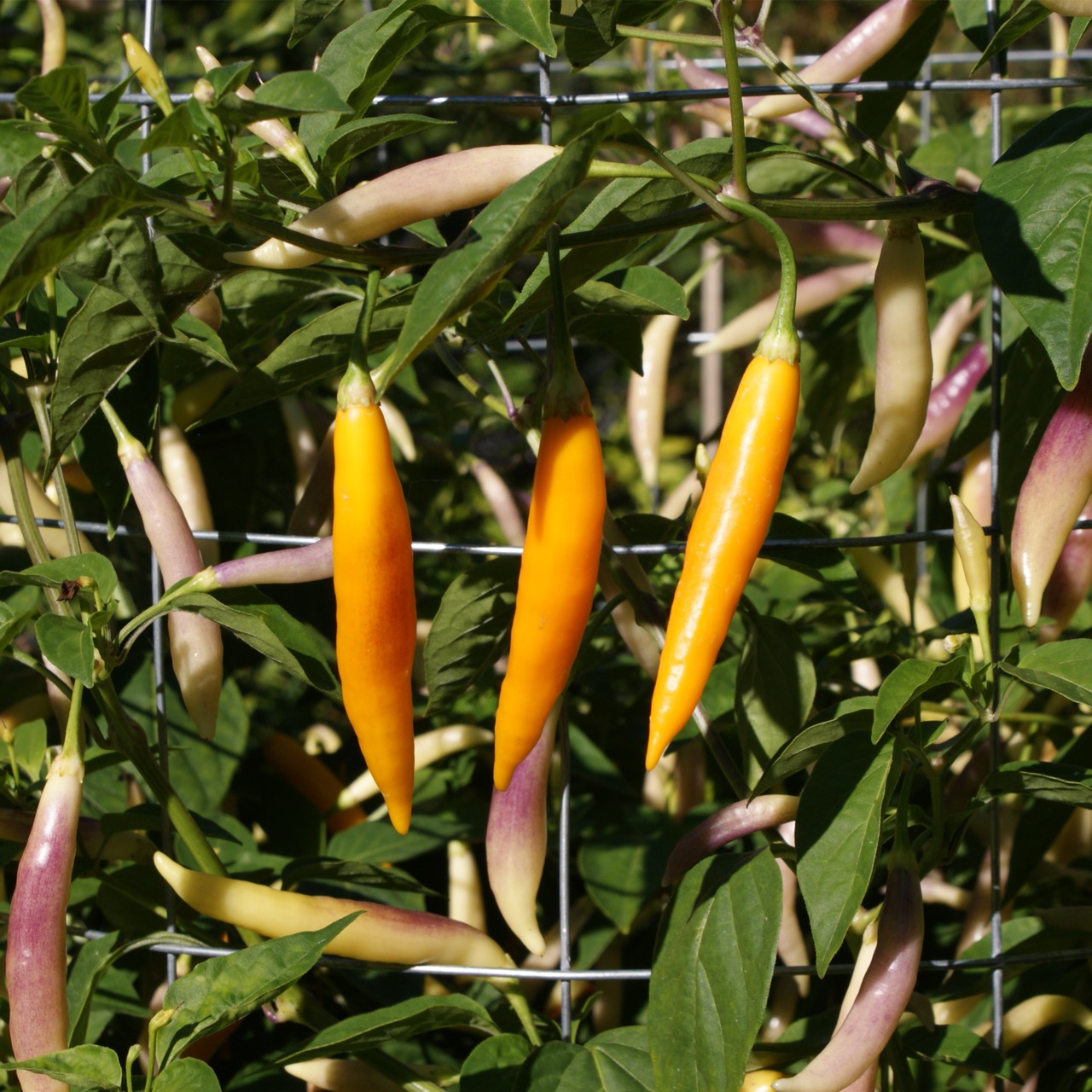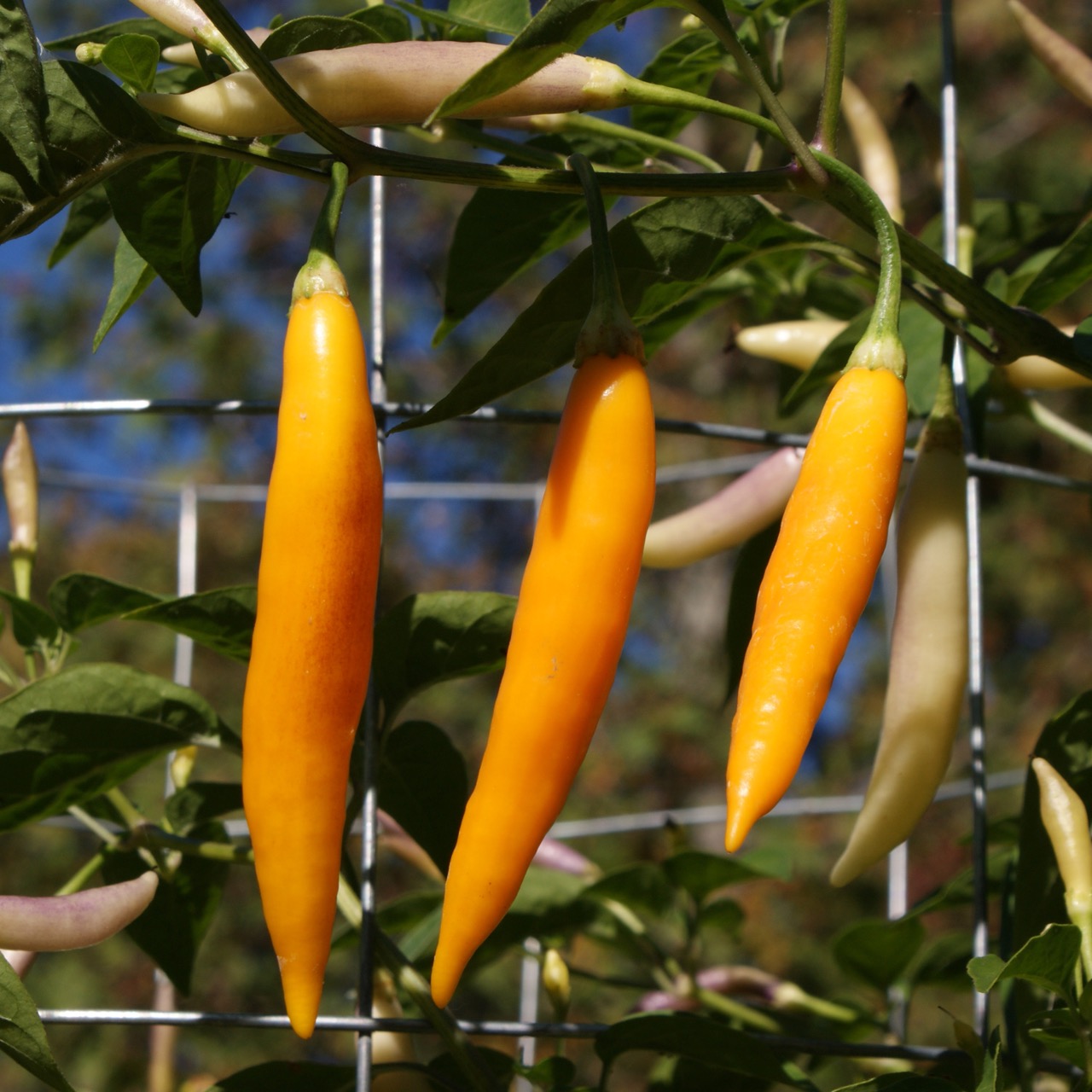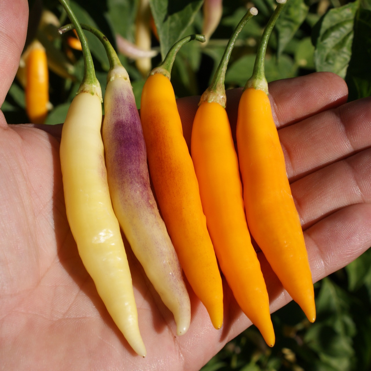 Le Aji Challuaruro Amarillo est une ancienne variété péruvienne de Capsicum baccatum , reconnue pour sa couleur spectaculaire et sa saveur fruitée intense . Originaire des vallées andines, ce piment fait partie du patrimoine culinaire traditionnel du sud du Pérou , où il est encore cultivé artisanalement. Ses fruits présentent une forme allongée et légèrement torsadée , avec une peau fine et lustrée. Ils mûrissent du vert pâle à un jaune orangé éclatant , presque doré à maturité. Leur chair est aromatique et sucrée , accompagnée d’un piquant vif mais équilibré . Le Aji Challuaruro Amarillo se distingue par sa grande productivité et une maturation uniforme . Sa stabilité et sa vigueur en font une variété fiable et remarquable, très prisée par les collectionneurs de baccatum .