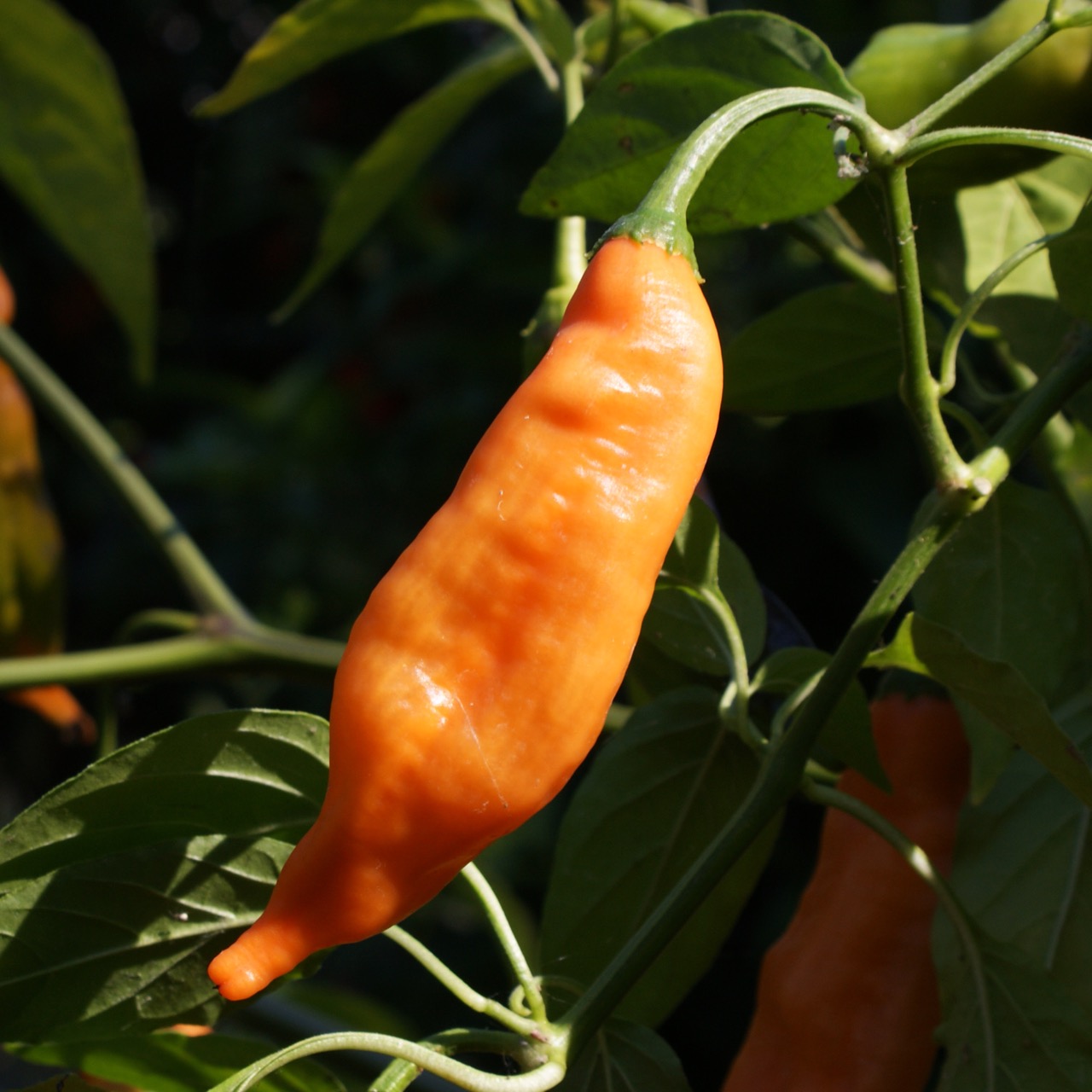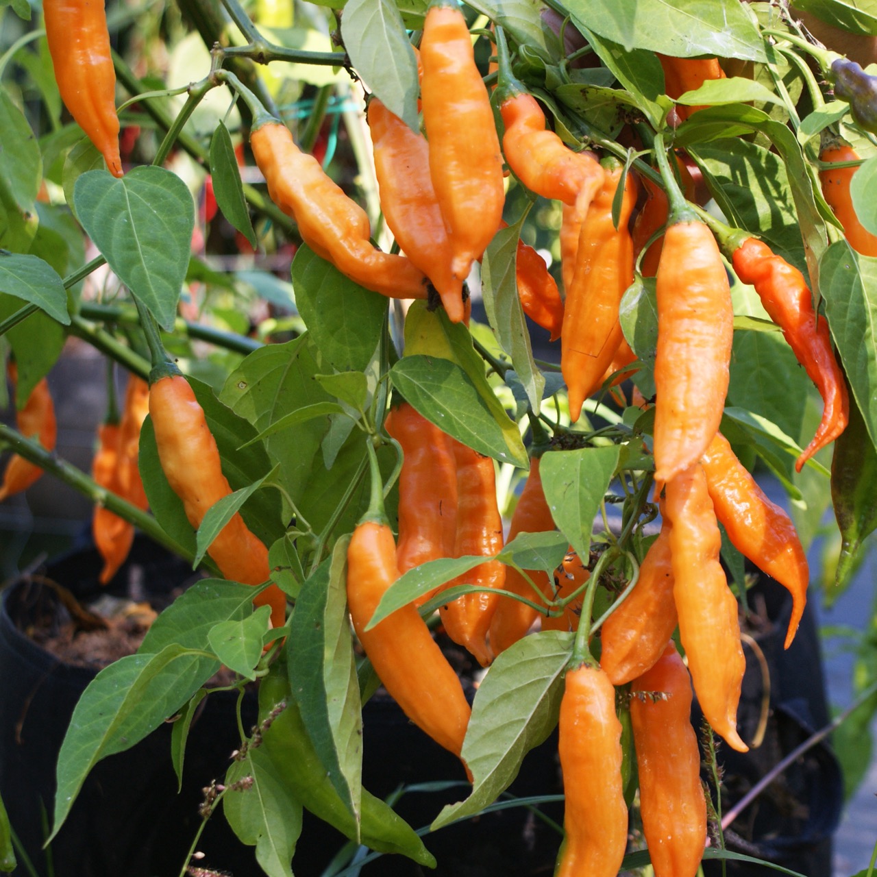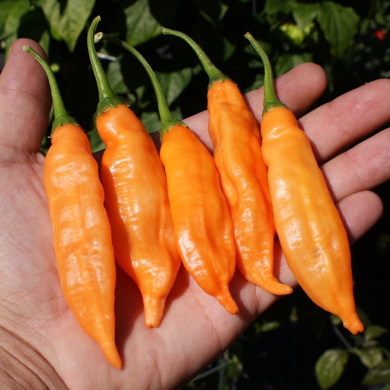 Le Aji Colorado Orange est une superbe variété bolivienne de Capsicum baccatum , issue d’une sélection naturelle du classique Aji Colorado. Cette version se distingue par la brillance et la chaleur de sa couleur orange , ainsi que par sa saveur douce et fruitée légèrement plus marquée que celle de la version rouge. Les fruits sont allongés, lisses et légèrement recourbés , passant du vert clair à un orange lumineux à maturité. Leur chair tendre et aromatique offre un équilibre harmonieux entre chaleur moyenne et fraîcheur tropicale . Le Aji Colorado Orange se distingue par sa vigueur , sa floraison abondante et sa maturation régulière . Sa stabilité et son rendement élevé en font une lignée très appréciée des collectionneurs et des cultivateurs recherchant un piment coloré, stable et constant.