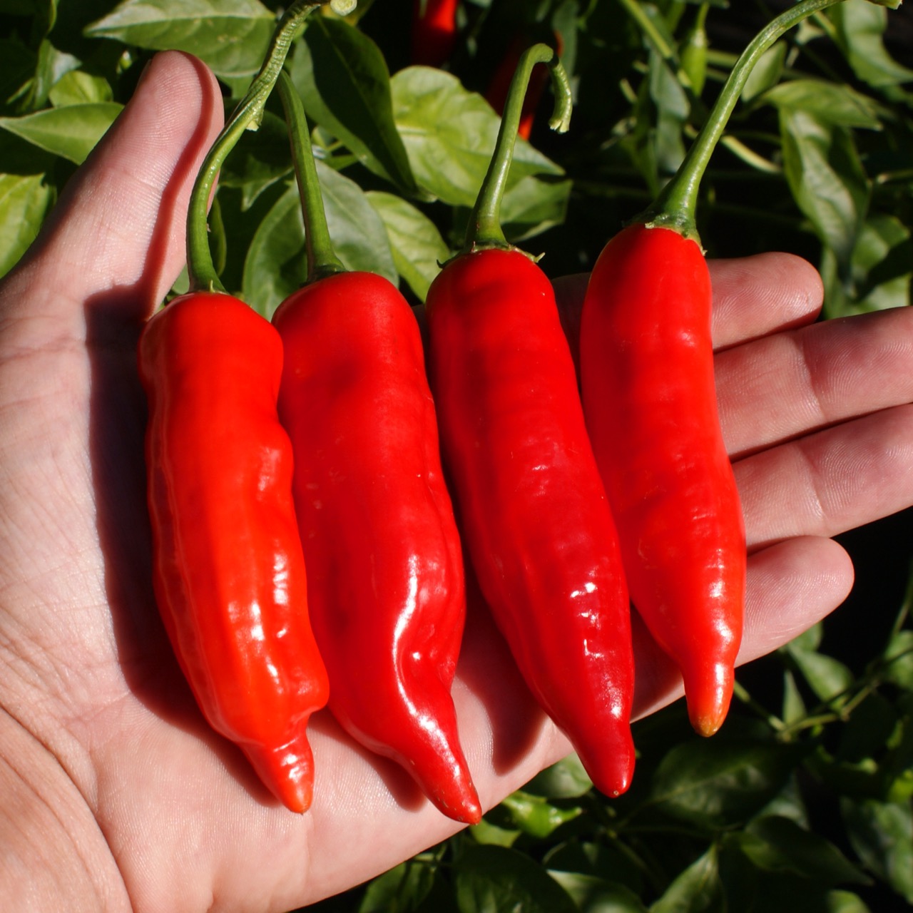 Le Aji Norteño est une variété péruvienne traditionnelle originaire des vallées côtières du nord du Pérou. Reconnu localement comme le “Aji du Nord”, il est célébré pour sa croissance vigoureuse, sa productivité exceptionnelle et sa chair épaisse, ce qui en fait l’un des meilleurs baccatum pour un usage culinaire. Les fruits sont larges et allongés , avec une chair dense et croquante . Ils passent du vert clair à un rouge vif à maturité. Leur saveur légèrement sucrée et fruitée dégage des notes fines et aromatiques rappelant la pomme verte. Le plant, naturellement vigoureux et de grande taille , reste facile à cultiver et tolère des climats plus frais que la plupart des variétés tropicales.