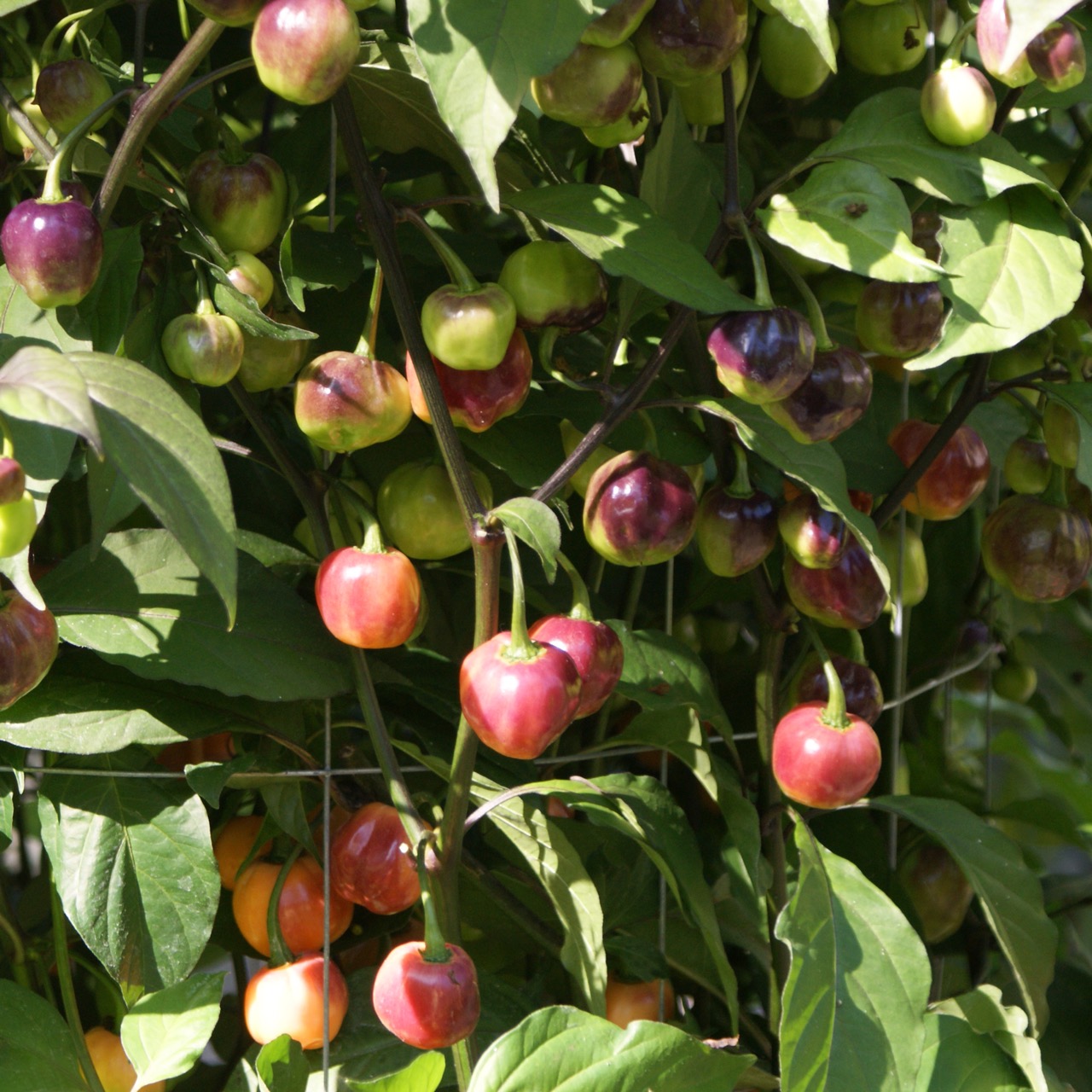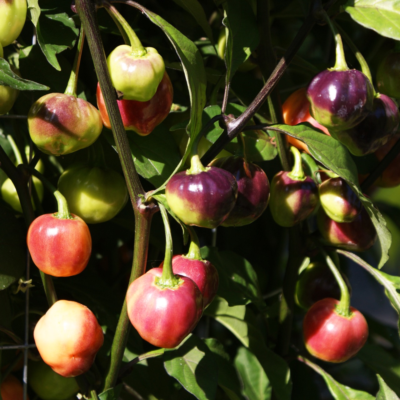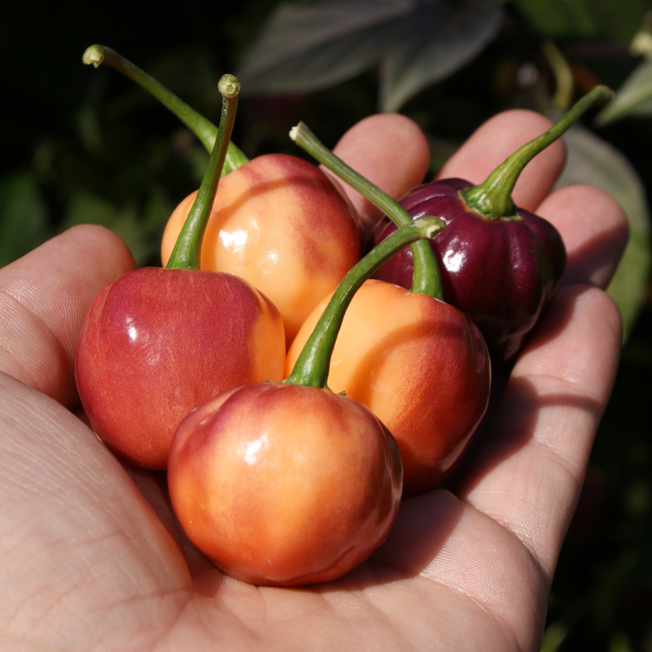 Le CGN 21500 est une variété exceptionnelle et spectaculaire issue de la collection du Centre for Genetic Resources, Netherlands (CGN) , aux Pays-Bas , un programme mondial dédié à la préservation des variétés végétales rares . Originaire du Guyana , ce piment séduit autant par son esthétique unique que par son profil aromatique incomparable . Chaque plant est extrêmement productif , offrant des récoltes abondantes et régulières . Les fruits passent du vert pâle au violet foncé , puis développent à maturité de magnifiques nuances rosées et pêche . Leur arôme exotique et fruité , accompagné d’une chaleur vive mais équilibrée , en fait un piment d’exception .