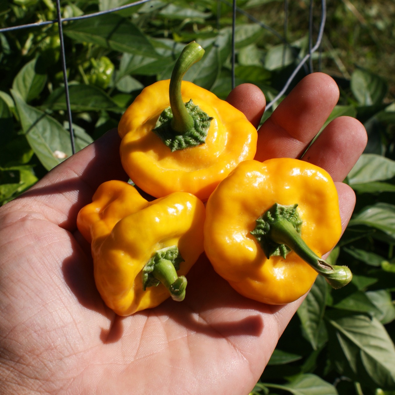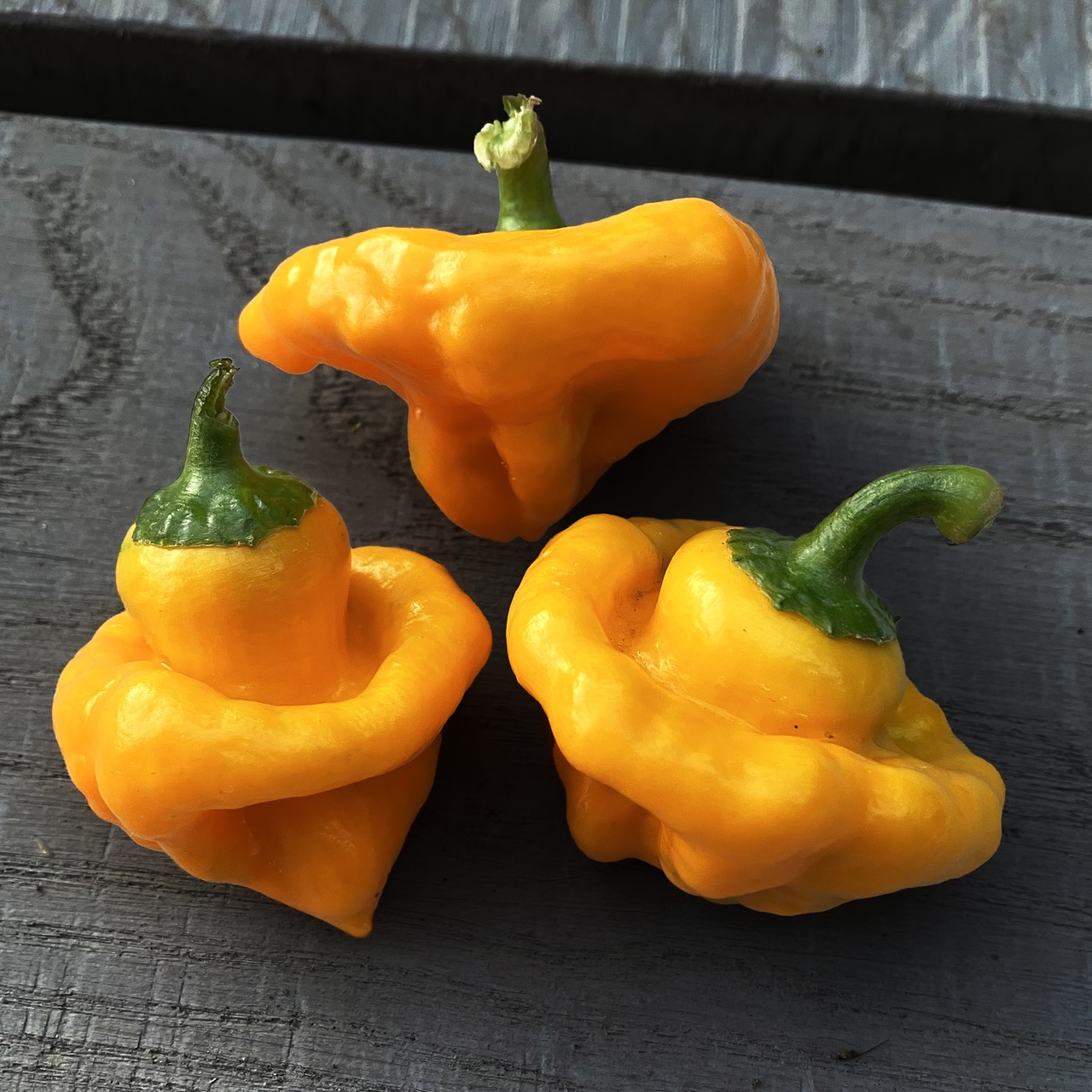 Le Jamaican Mushroom est une variété traditionnelle des Caraïbes , reconnaissable à ses fruits en forme de champignon . Cette lignée, apparentée aux Scotch Bonnet et Habanero , est réputée pour sa saveur fruitée intense et sa chaleur soutenue mais équilibrée . Les fruits passent du vert clair au jaune orangé à maturité. Leur chair épaisse, juteuse et aromatique dégage un parfum tropical , mêlant notes de mangue, de citron et de piment doux , typique des piments des Antilles.