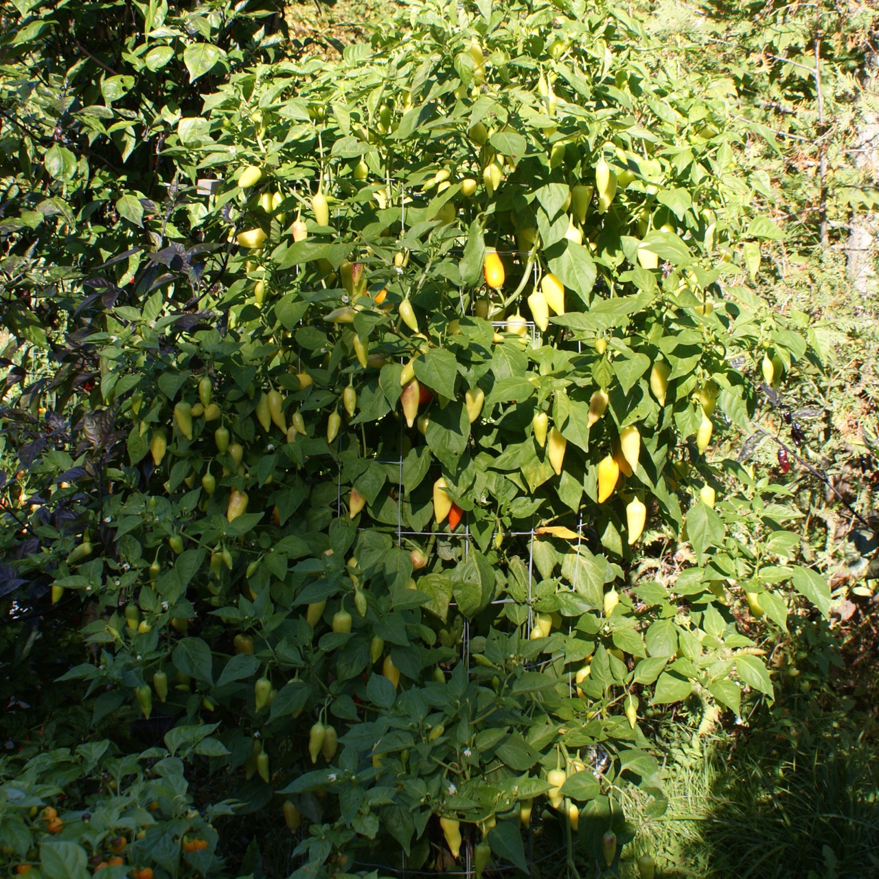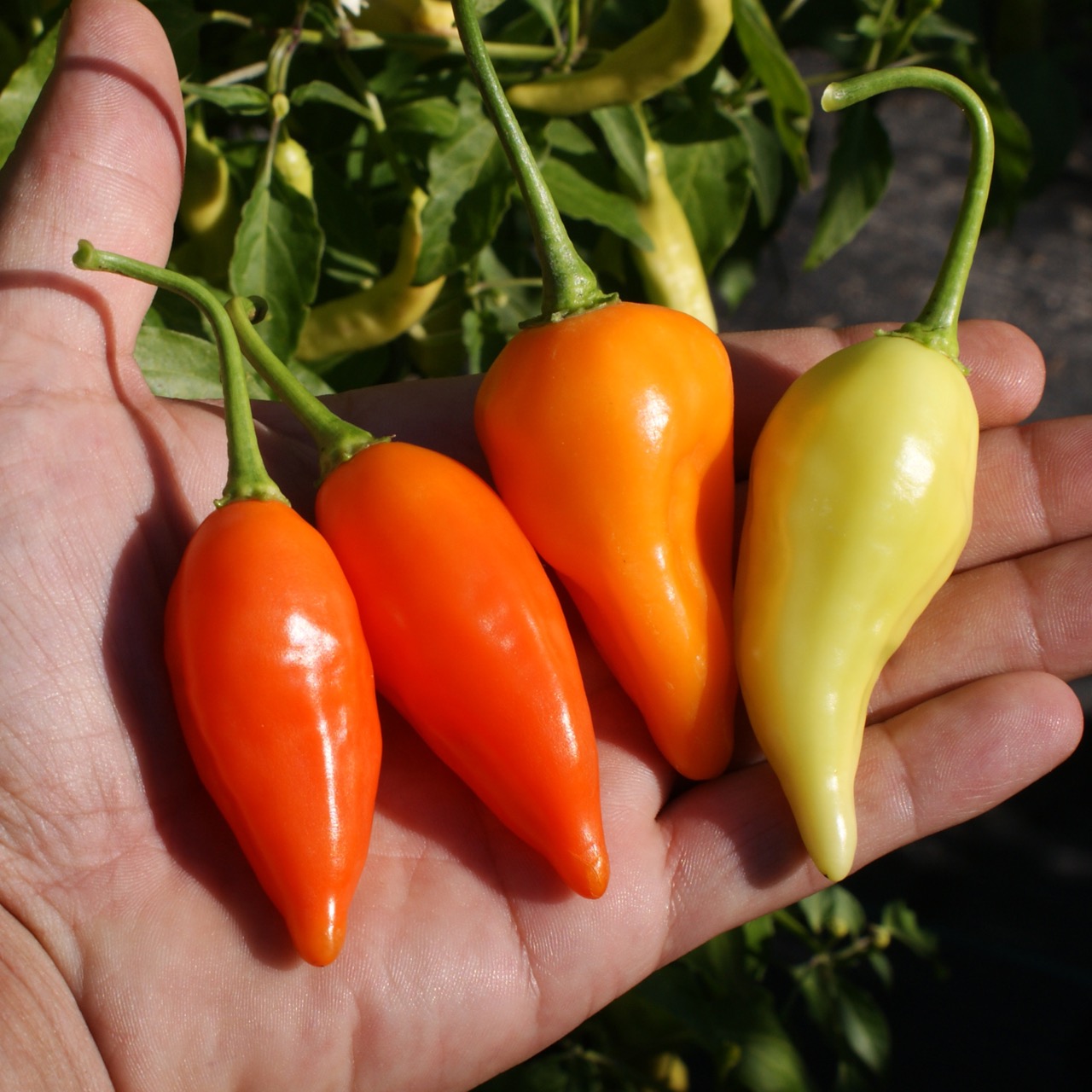 Le Peruviano Arancio est une variété exceptionnelle de piment originaire du Pérou . Comme la plupart des baccatums, la plante est large, vigoureuse et très ramifiée. Extrêmement producti f , il offre une abondance de fruits d’un orange vif à maturité. Leur saveur douce et fruitée est décrite comme " rafraîchissante " , ce qui en fait un ingrédient de choix, aussi bien pour la consommation fraîche qu’en cuisine . Sa chair épaisse et juteuse révèle une chaleur douce et agréable , parfaite pour ceux qui recherchent le goût sans excès de piquant.
